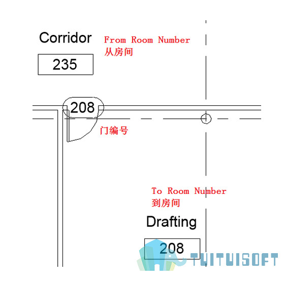 建筑门的两侧对应着不同的房间编号,是否可以将这两个房间编号信息添加到门里(从而明确门的开启方向),并最终添加到标签上。