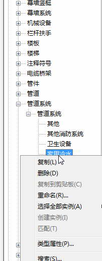 2.接着在管道系统中,我们任意复制一个出来,重命名为给水