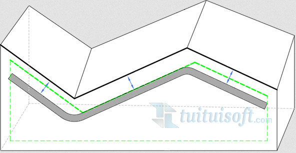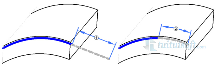 自由形式钢筋会自动延伸或缩短到最近的主体面。如下图所示,扩展将切线延伸至端点 ,同时沿曲线 会发生缩短情况。