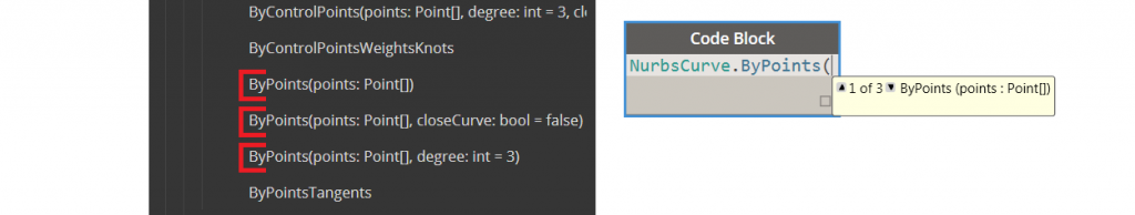 [3] 现在代码块中会提示同一方法名的不同输入参数形态。这可以帮助你找到正确的参数输入类型和顺序。