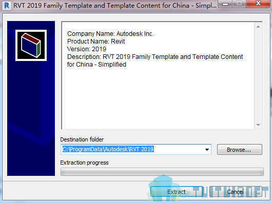 2、双击压缩包进行解压,解压后弹出一个文件路径放置的对话框,在这个对话框当中尽量不要去更改它的文件路径,除非Revit软件安装在其他路径